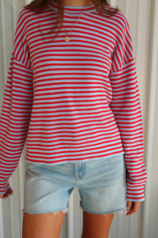 Ultra Soft Knit Baby Blue Striped Crewneck Sweater